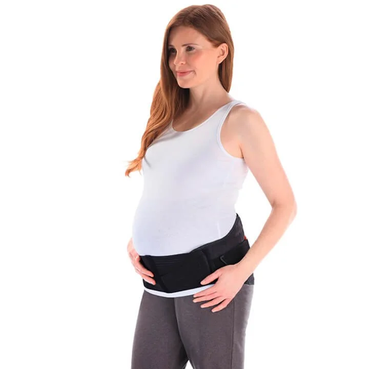 - Banda regulable de soporte abdominal. Se adapta a todas las etapas del embarazo (incremento de volumen abdominal hasta 150 cm).