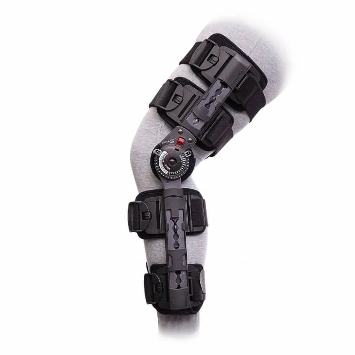Inmovilización y protección del rango de movimiento asociado a las cirugías y reparaciones meniscales de ligamento cruzado anterior (ACL), ligamento cruzado posterior (PCL), ligamento colateral lateral (LCL) y ligamento colateral medial (LCM).